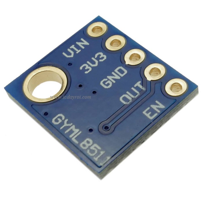 Cảm Biến Tia Cực Tím UV ML8511 sử dụng IC cảm biến ML8511 có độ nhạy cao, cảm biến có tích hợp sẵn bộ khuếch đại analog nên có thể lấy trực tiếp dữ liệu Ananog từ cảm biến và cho vào ADC của Vi điều khiển mà không cần thêm các mạch khuếch đại. Cảm biến tia UV ML8511 có dòng tiêu thụ rất thấp, kích thước nhỏ gọn và độ chính xác cao, đầu ra là tín hiệu Analog nên rất dễ giao tiếp và xử lý dữ liệu từ cảm biến bằng Vi điều khiển.