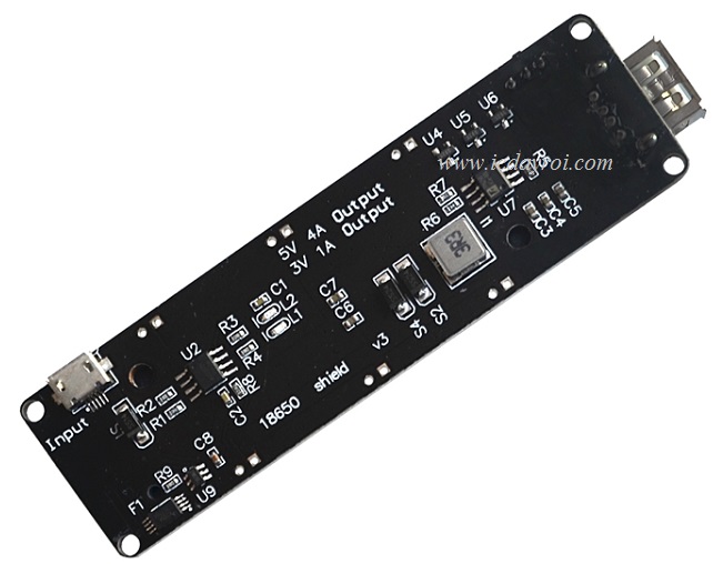 Mạch 18650 battery shield V3 được tích hợp mạch sạc pin chuyên dụng và IC chuyển áp từ pin sang 5VDC (USB, Pinout Header) / 3VDC (Pinout Header) để cấp nguồn bằng pin cho Arduino, ESP8266, ESP32, Raspberry Pi,...