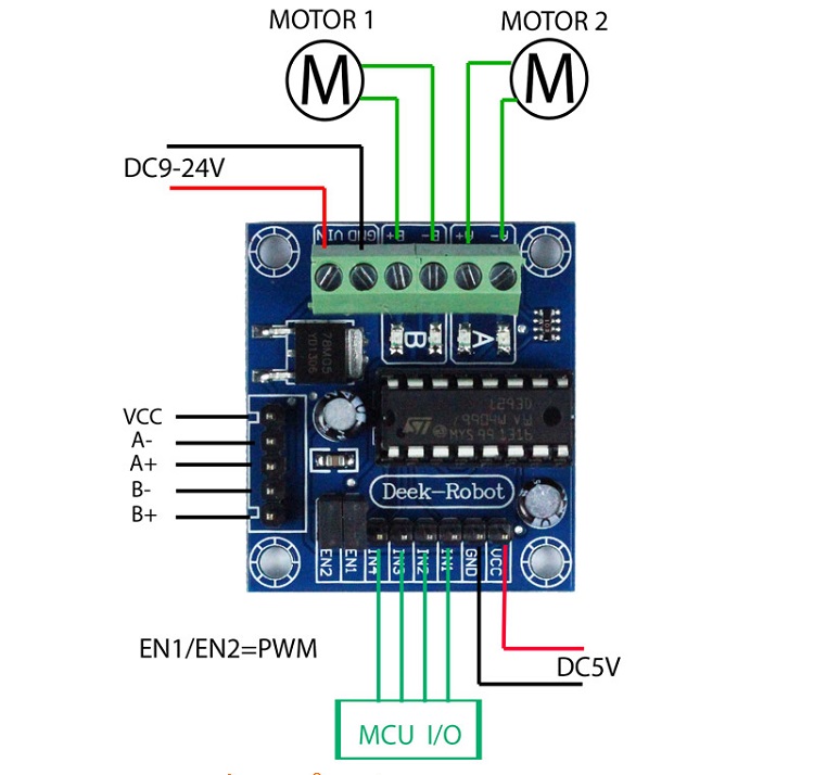 - To simplify use as two bridges each pair of channels is equipped with an enable input. A separate supply input is provided for the logic, allowing operation at a lower voltage and internal clamp diodes are included.