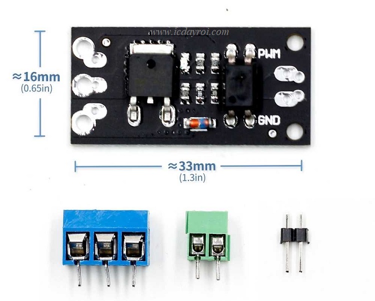 Module Mosfet Mos hiệu ứng trường được sử dụng rộng rãi trong các thiết bị điều khiển động cơ điện, van điện từ và các thiết bị phụ lưu khác.